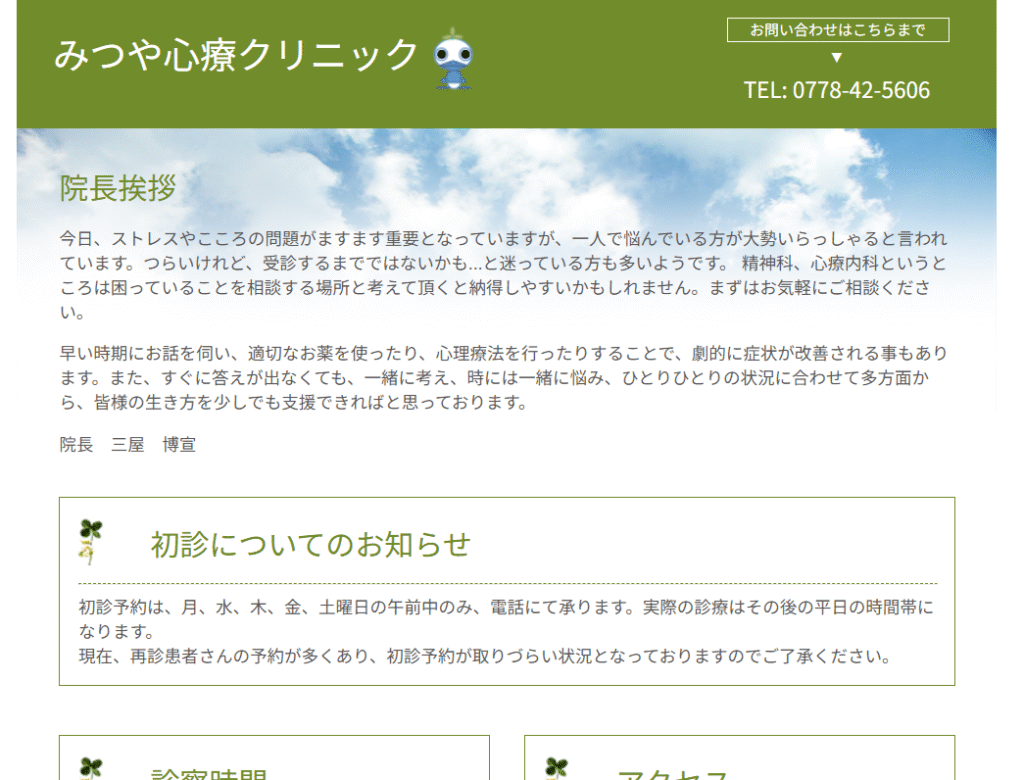 まず初診予約時の電話をした時に対応してくれた方の優しい話し方にホッとしました。
