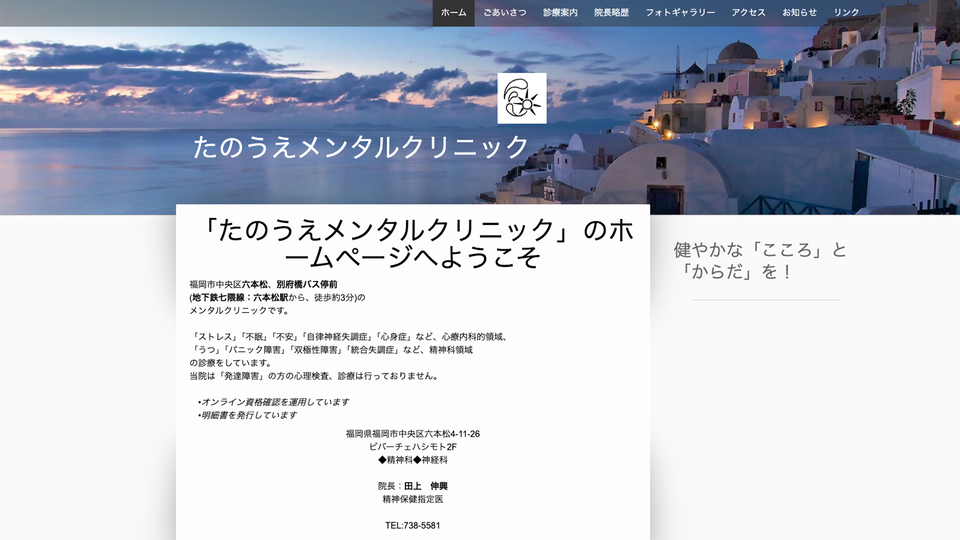 院長は精神保健指定医として、患者さんひとりひとりと真摯に向き合い、健やかな「こころ」と「からだ」を取り戻せるよう微力ながらサポート。現代社会の不安や憂うつを感じている方は、ぜひたのうえメンタルクリニックへの受診を検討してみてはいかがでしょうか。