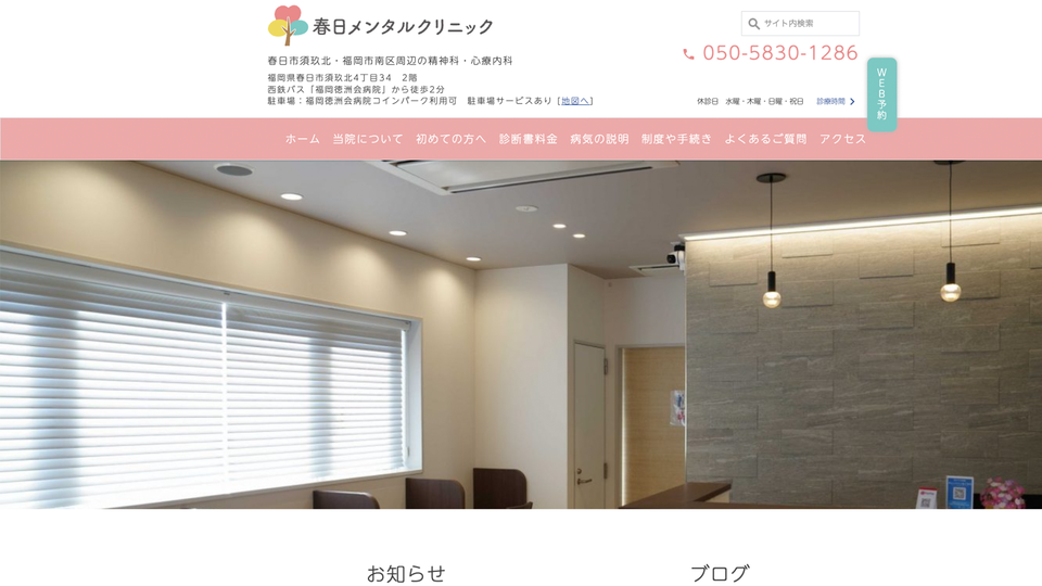 春日メンタルクリニックは、精神科・心療内科を診療科目とするクリニックです。