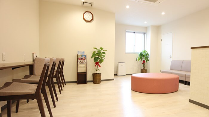 待合室は他の患者さんと目が合いにくいよう、壁向きに座れる設計がされています。さらに患者さんを診察や会計で呼ぶ際には番号で呼びあげるよう配慮。診察室の声が部屋の外に漏れないよう、声もれしにくいよう設計されているなど、患者さんのプライバシーに配慮しています。