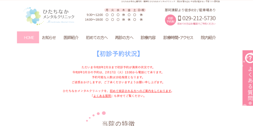 初診予約はかなり混雑していて、私の場合は最も早い日にちで3週後ほどの予約でした。