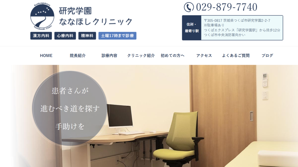 研究学園ななほしクリニックは、西洋医学と漢方医学の長所を生かした診療を行っています。うつ病などの内因性精神疾患には西洋医学的治療を優先し、心身症や原因の特定が難しい身体の不調には漢方処方を積極的に取り入れていることが魅力です。