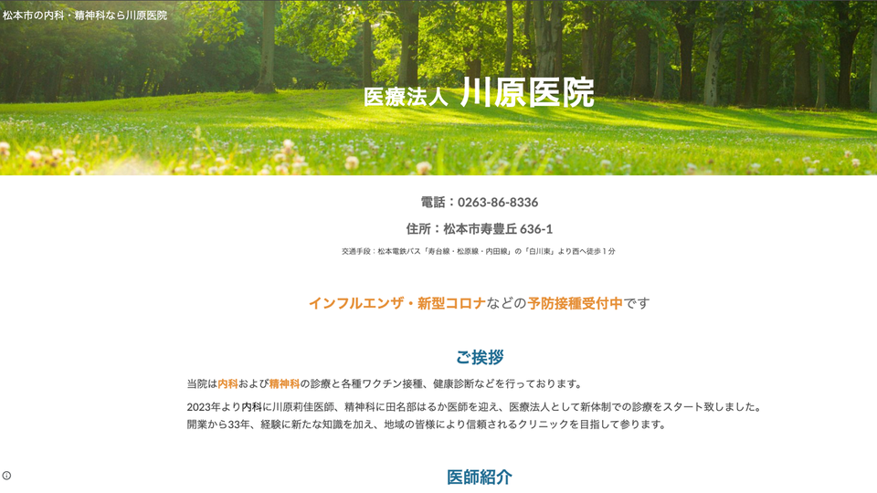 川原医院は、内科および精神科の診療を行うクリニックです。2023年より内科に川原莉佳医師、精神科に田名部はるか医師を迎え、医療法人として新体制での診療をスタートしました。