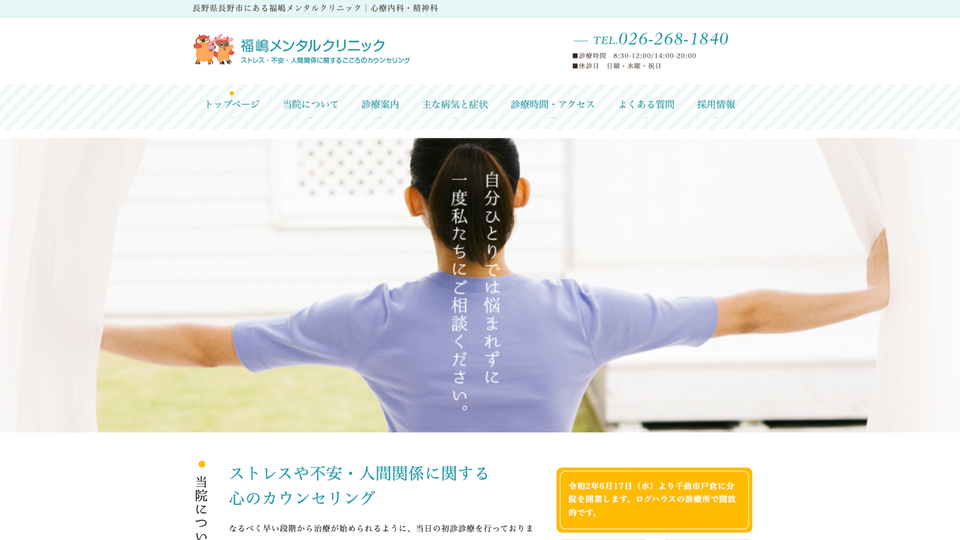 福嶋メンタルクリニックは、なるべく早い段階から治療が始められるよう、若里本院に限り月曜・木曜(祝日除く)の当日初診診療が可能です。