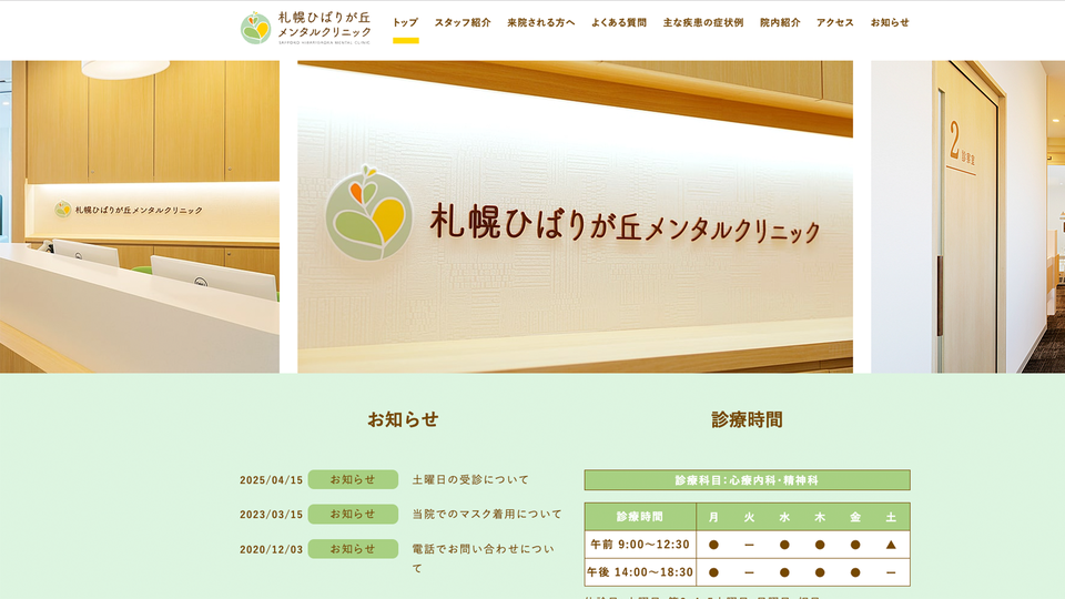 札幌ひばりが丘メンタルクリニックは、令和2年9月に開院した心療内科・精神科のクリニック。目には見えない「こころ」の治療のため、診察時に話をしっかりと聴き、治療方針や処方薬、治療の選択肢などの情報を提供し、納得いただいた上で治療することを心がけています。