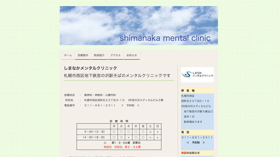 札幌市西区西町北7丁目2-11 西さっぽろメディカルビル1階