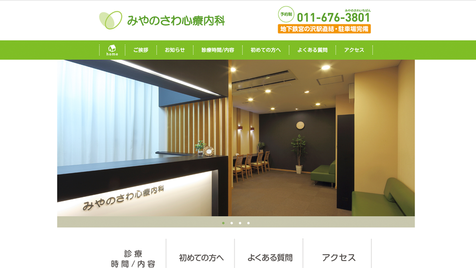 地下鉄東西線宮の沢駅1番出口直結という抜群のアクセスで、雨の日や雪の日でも安心して通院できます。無料駐車場も24台完備しているため、お車でのご来院も可能です。