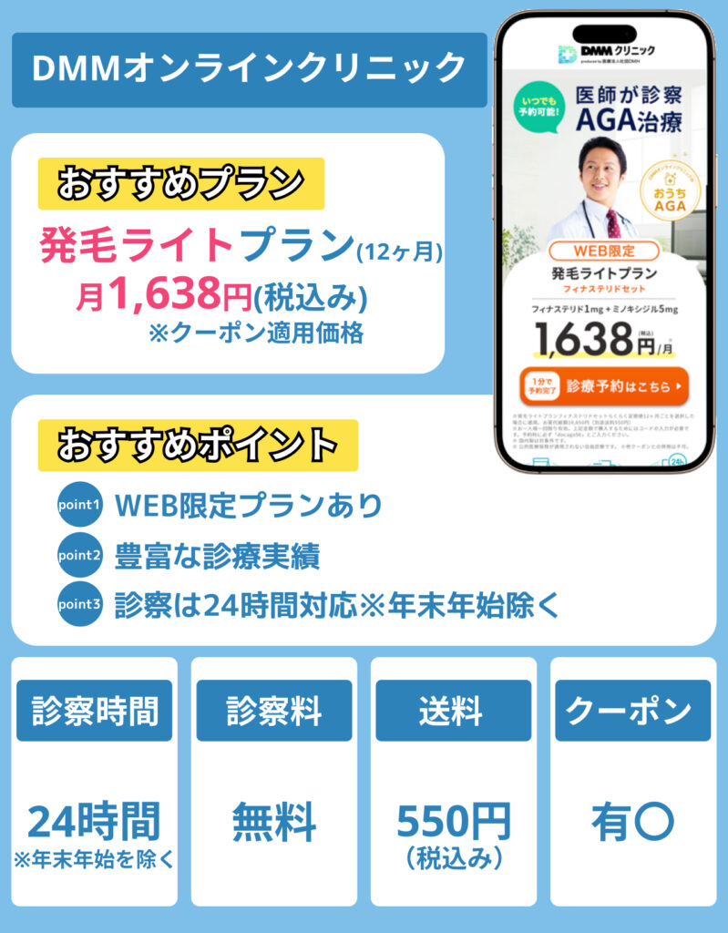 ※1 【発毛ライトプラン】12ヶ月プラン(フィナステリド+ミノキシジル5mg)の予約ページのコード欄に「docaga56」と入力するとクーポン価格が適用となります。