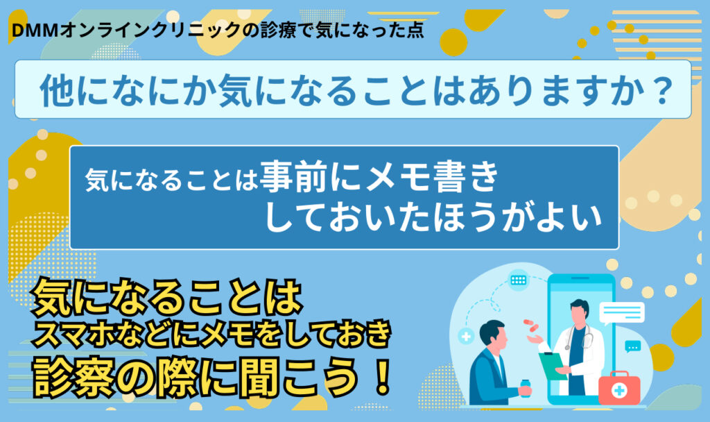 など…気になることは一通りスマホなどにメモをしておき、診察の際に聞くことをおすすめします。
