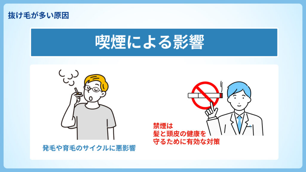 喫煙は血管を収縮させ、頭皮への血流を悪化させる代表的な要因です。